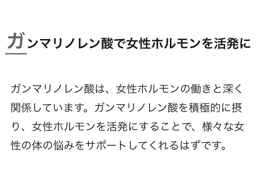 ガンマリノレン酸は、女性ホルモンの「原材料」になる成分の一つで、体内で作り出すことができない必須脂肪酸です。